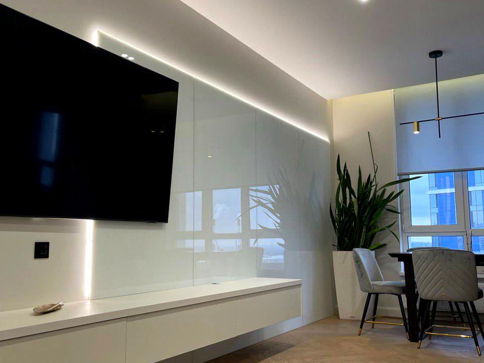 Повна комплектація "під ключ": Вам не доведеться думати про техніку. У квартирі встановлено преміальну лінійку Samsung: від величезного 75-дюймового телевізора та винної шафи до пральної та сушильної машин.