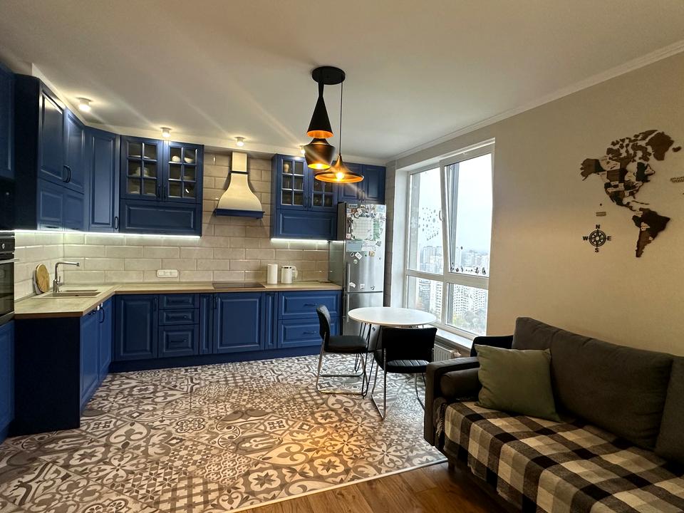 Ремонт виконаний з сучасних дорогих матеріальлів по дизайн проєкту, меблі та техніка провідних виробників, всі деталі продумані до дрібниць. Планувалння: три роздільні кімнати та кухня-вітальня, два роздільних санвузли.