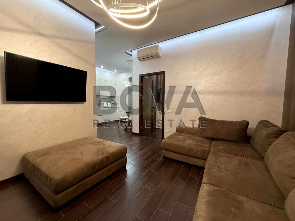 Квартира з дизайнерським ремонтом, виконаним із якісних матеріалів у сучасному стилі. Оселя продумана до дрібниць, має зручне зонування, теплі кольори та приємну атмосферу.