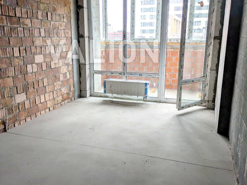 Квартира розташована на 17 поверсі з 25. Після кінцевих замірів БТІ площа квартири 46 м кв. Зручне планування - велика кухня-вітальня з виходом на лоджію і окрема спальня. Вікна в сторну Ретровіля і сусідніх будинків. В квартирі на підлозі піщано-цементна стяжка, з шумоізоляцією. Стіни без оброблення. Є лічильники.