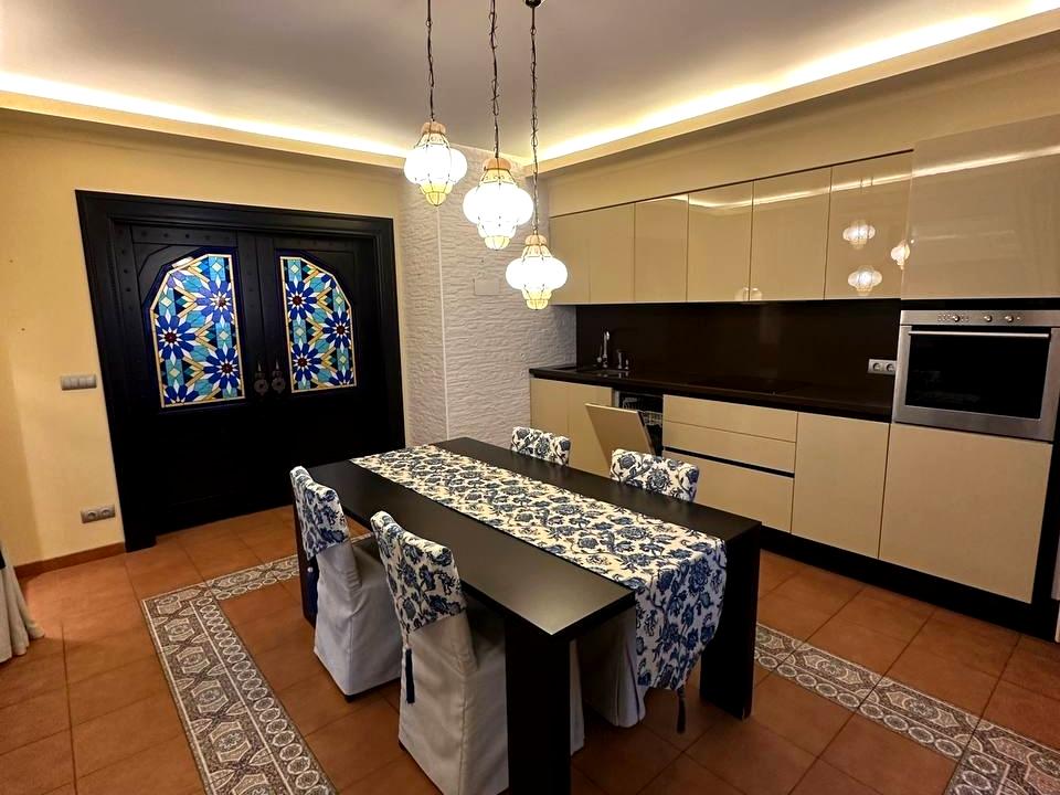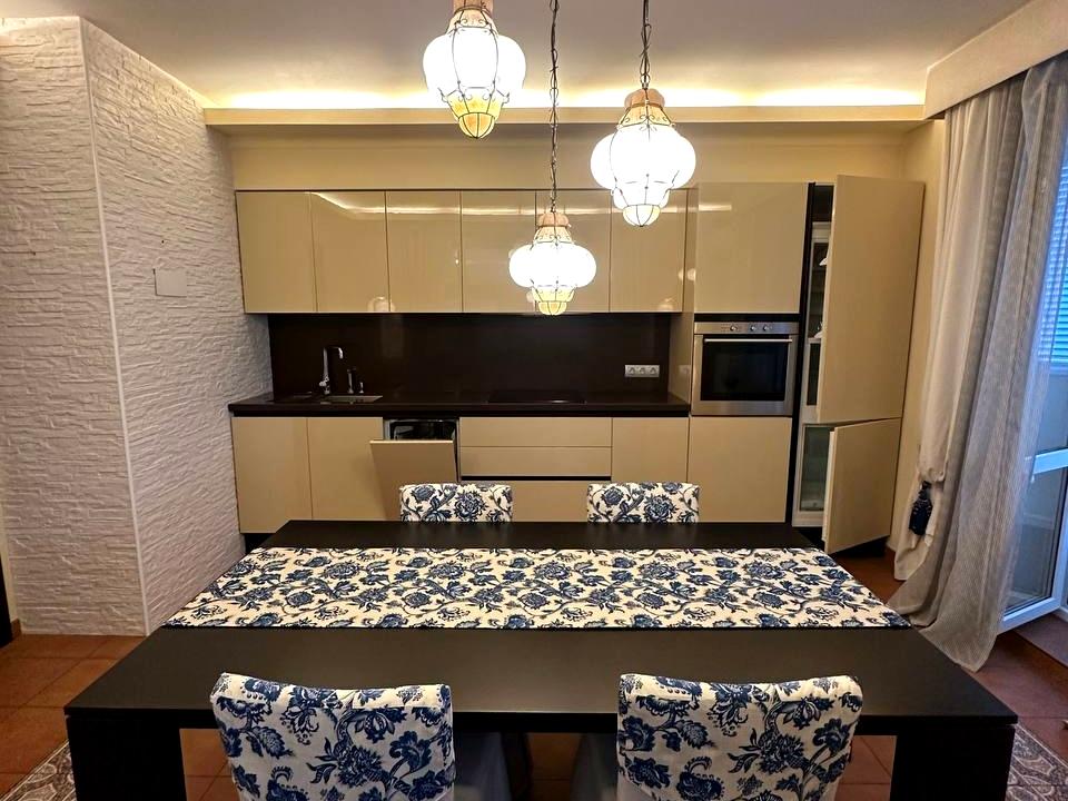 Продається з меблями й технікою: італійські меблі, 2 кондиціонери, кухня з натурального каменю, холодильник, духова та мікрохвильова піч, посудомийка, фільтри, бойлер.