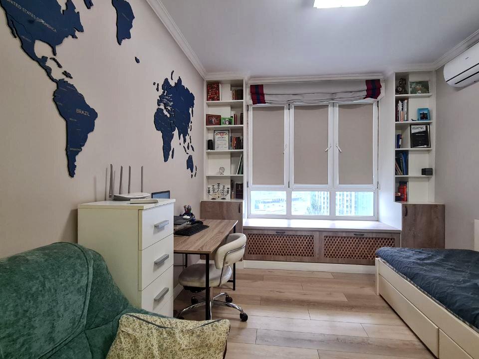 Квартира в сучасному класичному стилі, загальною площею 108м², розташована на 12/24 поверсі, має гарне та зручне планування. В квартирі: велика гостьова кімната, зручна кухня, просторі дитяча кімната та мастер-спальня з виходом на простору засклену лоджію на якій можна гарно посидіти та відпочити в зручному кріслі не залежно ві пори року, 2 санвузли (один гостьовий), велика гардеробна. Меблі, якими упорядкована квартира, виконані або привезені на замовлення, вбудована техніка - пральна машина, холодильник, варильна поверхня, витяжка, кондиціонер, посудомийна машина - виробництва "Whirlpool", сантехніка виробництва Італія. Ремонт зроблений з якісних матеріалів, зі смаком та з любов'ю!