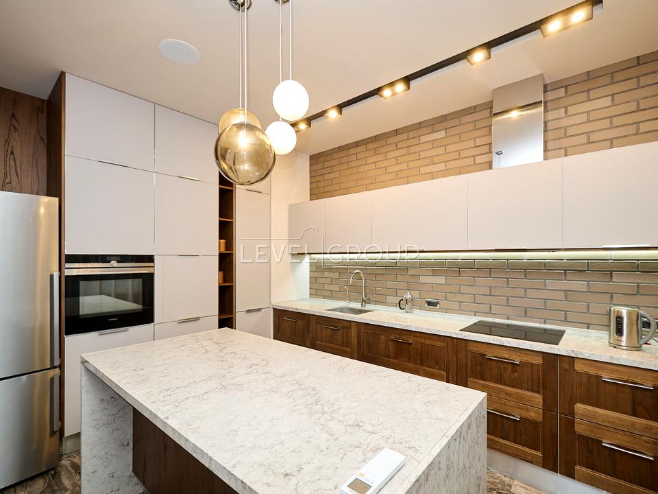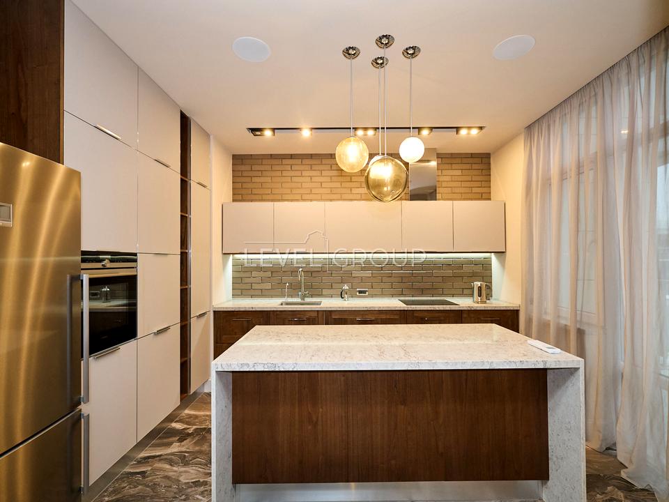 У квартирі виконано дорогий, дизайнерський ремонт за авторським проектом. Дизайн інтер'єру виконаний у теплих тонах, що додає квартирі гармонії, затишку та комфорту. Гармонійно підібрані меблі від відомих європейських виробників, предмети декору та освітлювальні прилади.