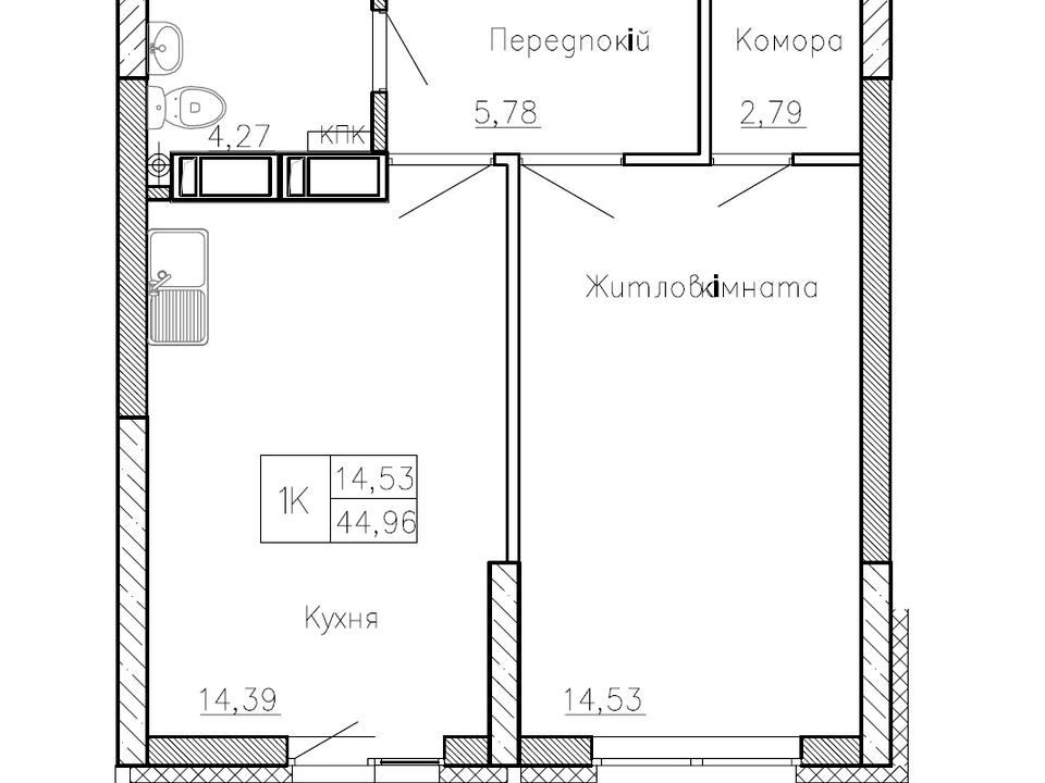 44.96кв.м., 21й поверх/26пов
