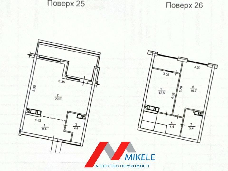 -1 рівень: кухня-вітальня, санвузол, балкон