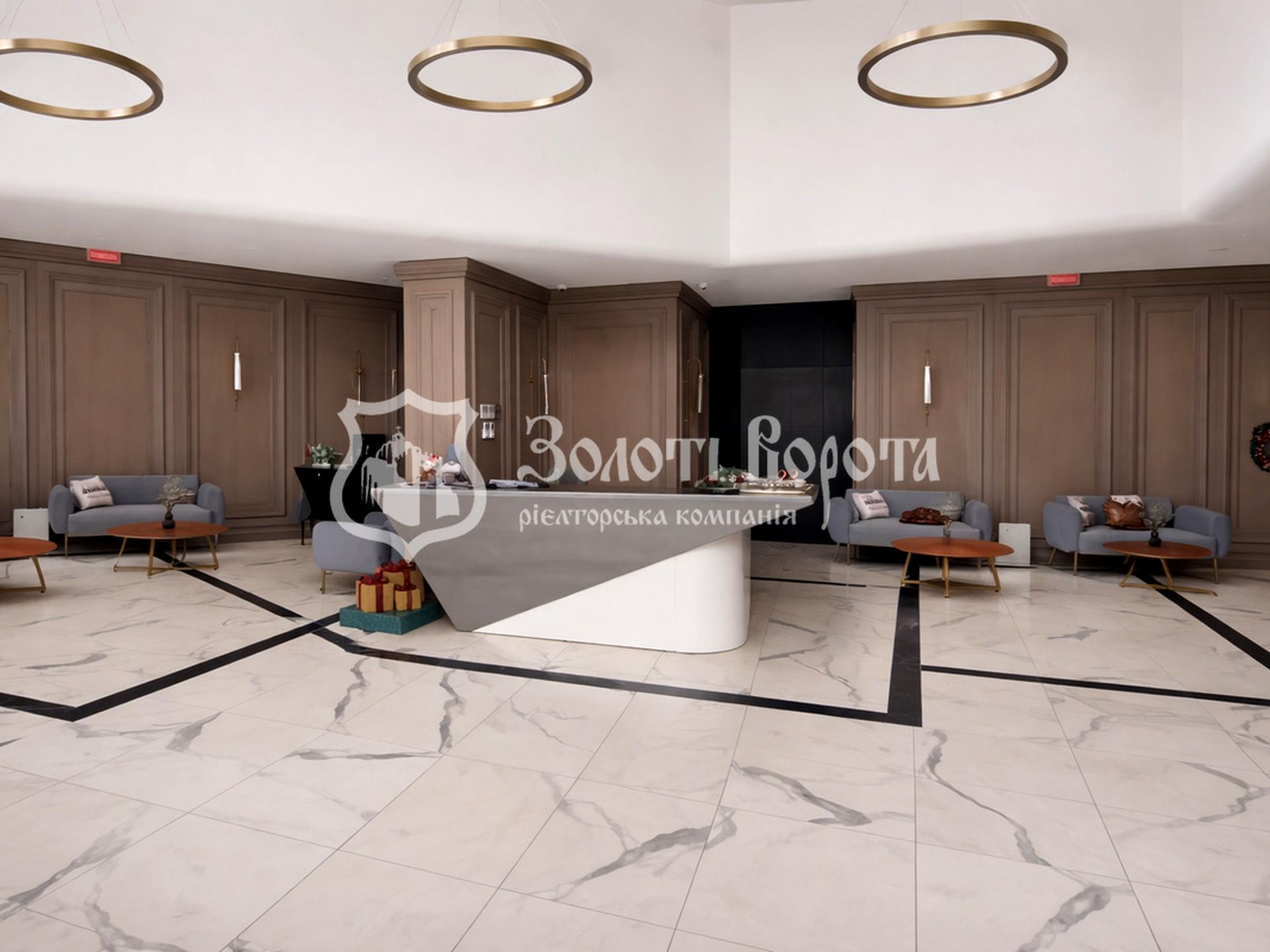 При вході дизайнерське лобі з просторими холами, лаунж-зонами та зонами для догляду за дітьми і тваринами.