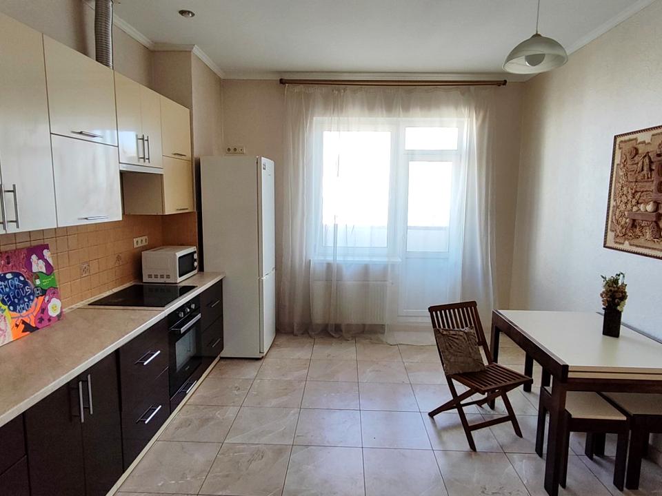 Простора квартира укомплектована необхідною технікою та меблями для комфортного проживання, вбудована кухня з технікою- холодильник, варильна поверхня з духовою шафою, витяжка, кондиціонер.