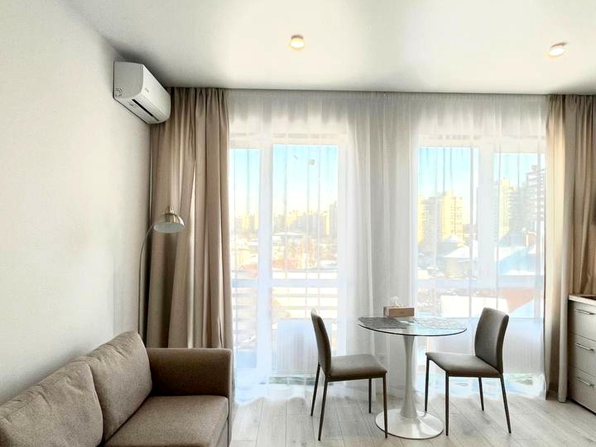В квартире 1 комната, Технологія будівництва - Монолітно-каркасна, Тип будинку - Спец. проект. Планировка комнат Студия. В квартире есть Подогрев полов, Кондиционер, Стиральная машина, Душевая кабина, Ванна, Холодильник. Дом построен в 2024 году. Общее состояние квартиры - С ремонтом. Работает без света - газ, отопление, интернет. Без комиссии