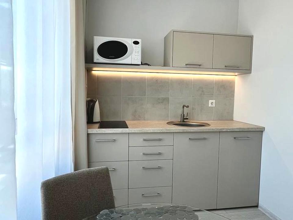 Встановлена вбудована кухня з побутовою технікою та кондиціонерю. Санвузол сумісний, обладнаний душовою кабіною, бойлером та пральною машинкою,
