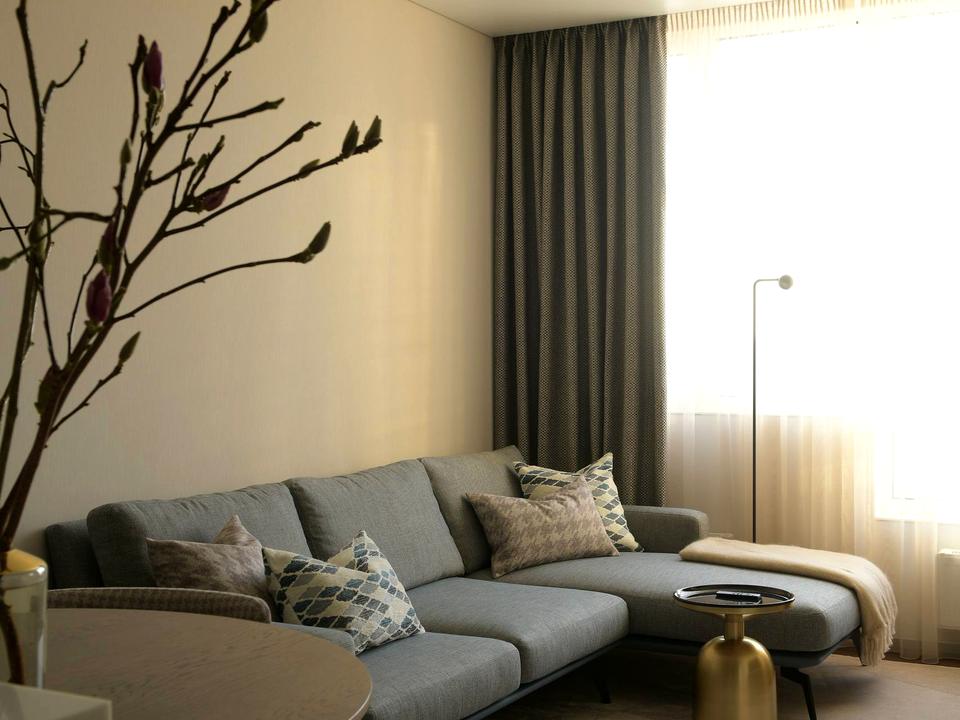 • Панорамні вікна з видом на захід сонця та Новопечерські Липки — особливо ефектно ввечері