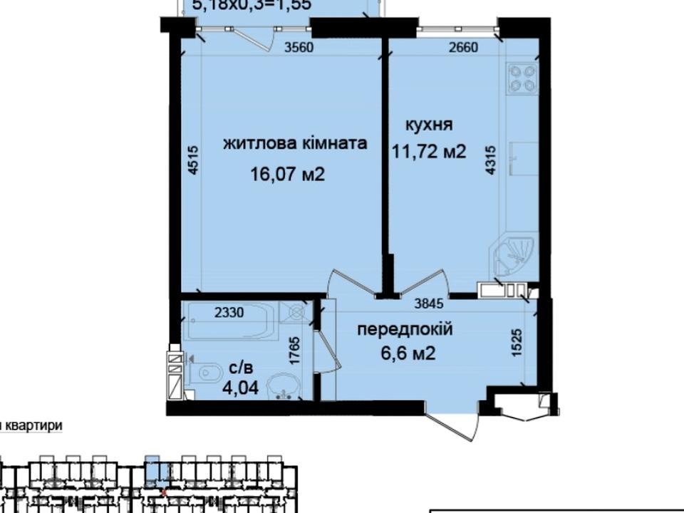 • Загальна площа квартири - 41м2 .