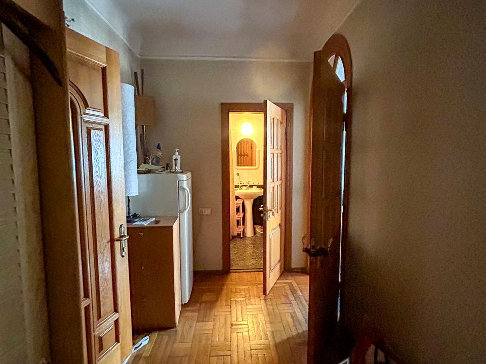 Квартира розташована на 5 поверсі 7-поверхового будинку з ліфтом, загальна площа — 51,8 м². Збережена атмосфера сталінського будинку з високими стелями та міцними перекриттями.