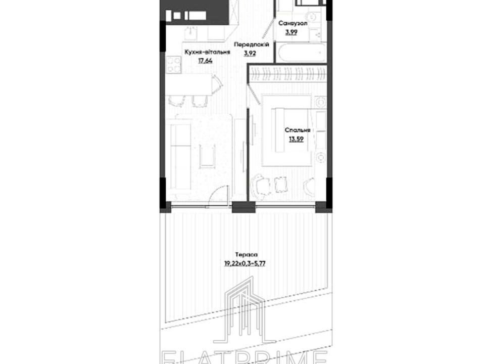 В квартире 1 комната. Планировка комнат Раздельная. Дом построен в 2025 году. Общее состояние квартиры - Без ремонта. Владелец соглашается продать по программе єОселя. Работает без света - вода, отопление, интернет, лифт. Без комиссии