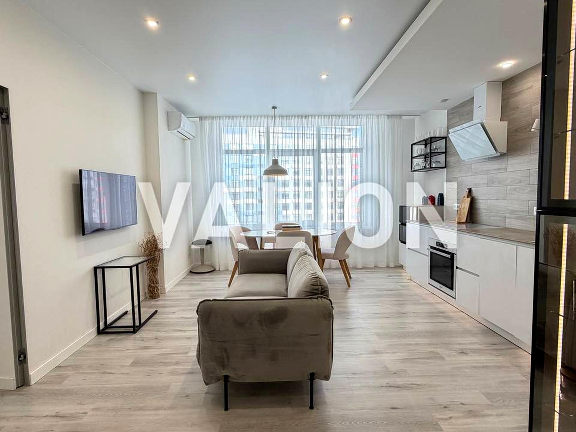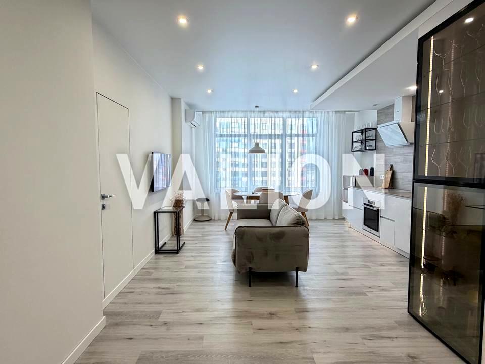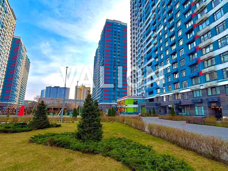 В квартире 2 комнаты, высота потолков 2.7 метра, Технологія будівництва - Монолітно-каркасна, Тип будинку - Спец. проект. Планировка комнат Раздельная. Газа нет, кухонная плита электрическая. Балкона нет. В квартире есть Телевизор, Кондиционер, Стиральная машина, Душевая кабина, Холодильник, Посудомойная машина. Дом построен в 2020 году. Общее состояние квартиры - С ремонтом. Горячая вода - централизованная. Количество санузлов: 2. Интернет оптоволоконный. Работает без света - вода, отопление, интернет, лифт. Тип кухни - кухня-студия. Количество спален: 2. Инфраструктура территории: детская площадка, спортивная площадка, отделенная зона для выгула животных, двор без авто. Комиссия за услуги 5 %