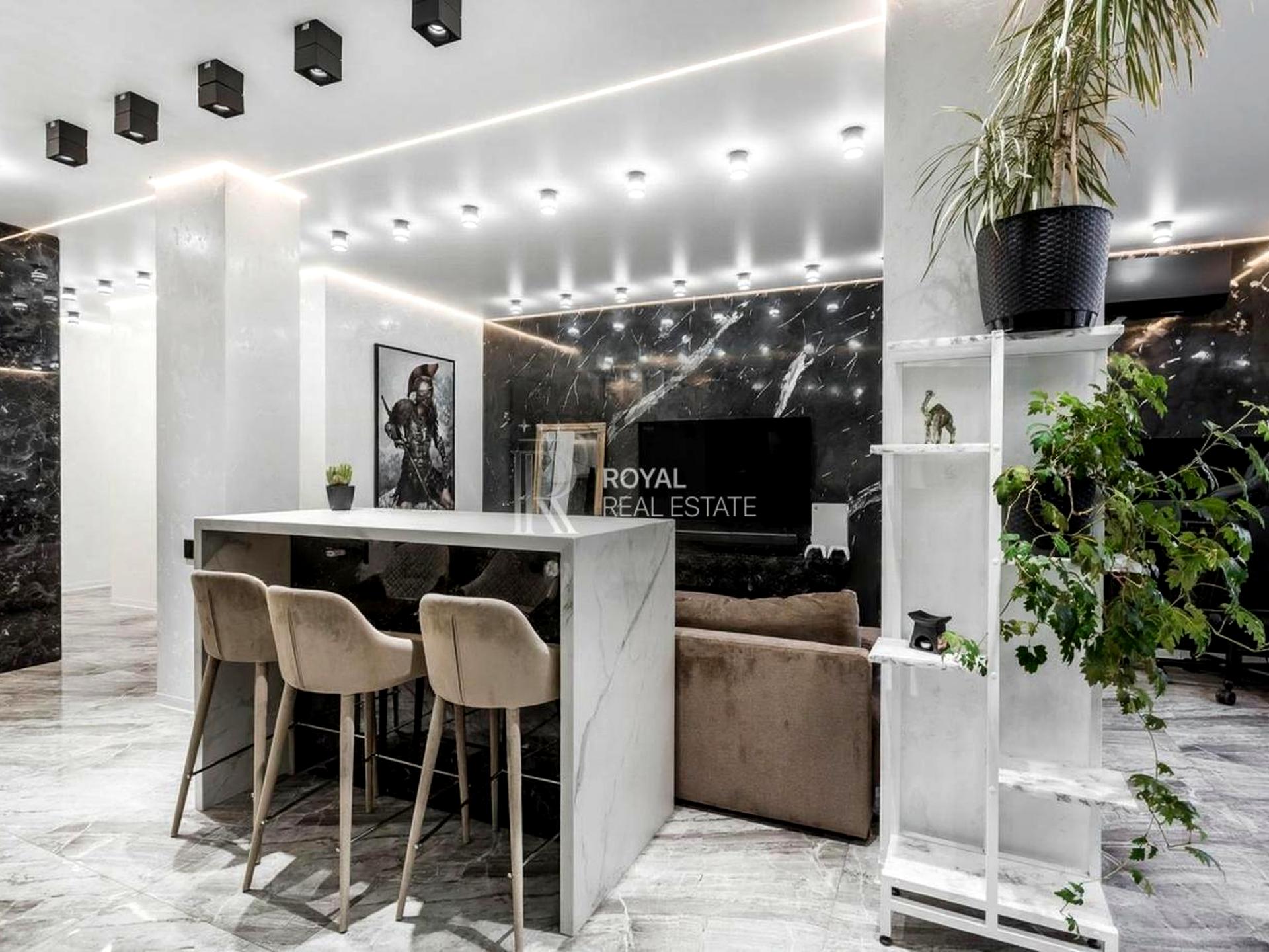 Формат квартири поєднує стильний дизайнерський інтер’єр, функціональне планування та простір для життя й відпочинку.