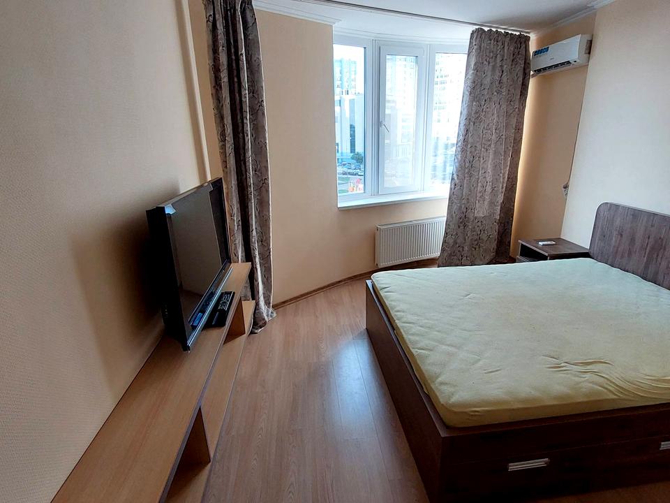 В квартире 1 комната, высота потолков 3 метра, Технологія будівництва - Монолітно-каркасна, Тип будинку - Спец. проект. Кухонная плита электрическая. В квартире есть Телевизор, Кабельное ТВ, Кондиционер, Стиральная машина, Ванна, Холодильник, Микроволновка. Дом построен в 2014 году. Общее состояние квартиры - С ремонтом. Горячая вода - электрический бойлер. Количество санузлов: 1. Работает без света - вода, отопление, лифт. Тип кухни - отдельная кухня. Количество спален: 1. Комиссия за услуги 50 грн