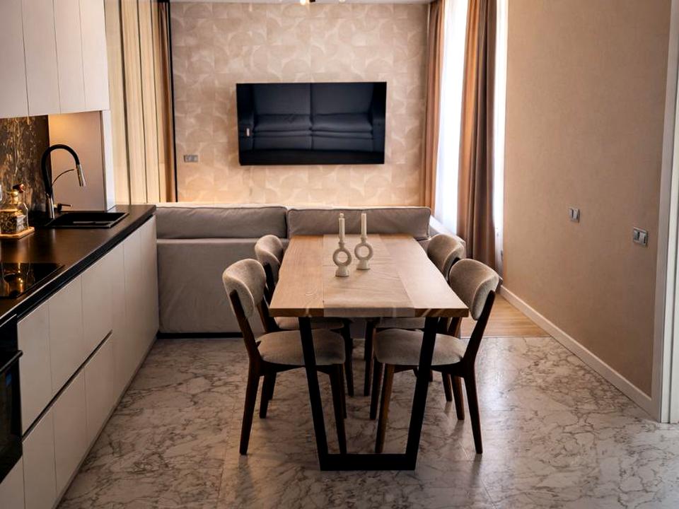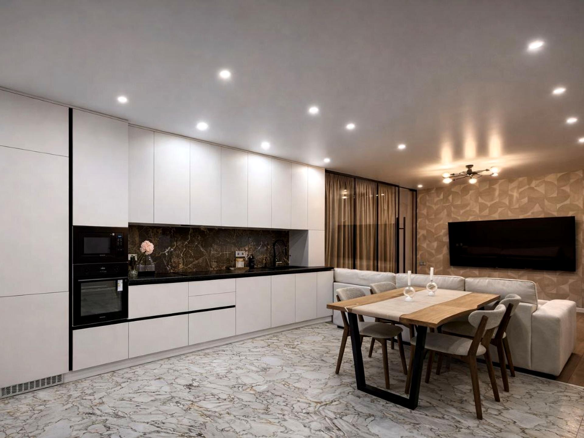 Сучасний інтер’єр виконаний із якісних преміальних матеріалів.
