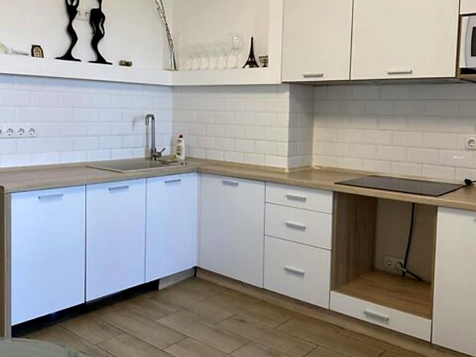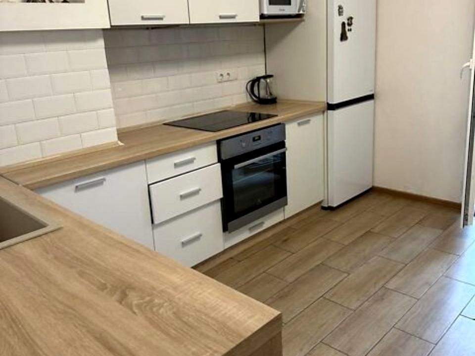 будинку. . Загальна площа - 54, 1 м2, Житлова площа - 18 м2, кухня - 13 м2. Квартира світла та простора. Зроблений якісний ремонт. Є окрема гардеробна. У квартирі є все для комфортного життя: плазмовий телевізор, електроплита, мікрохвильова піч, електрична