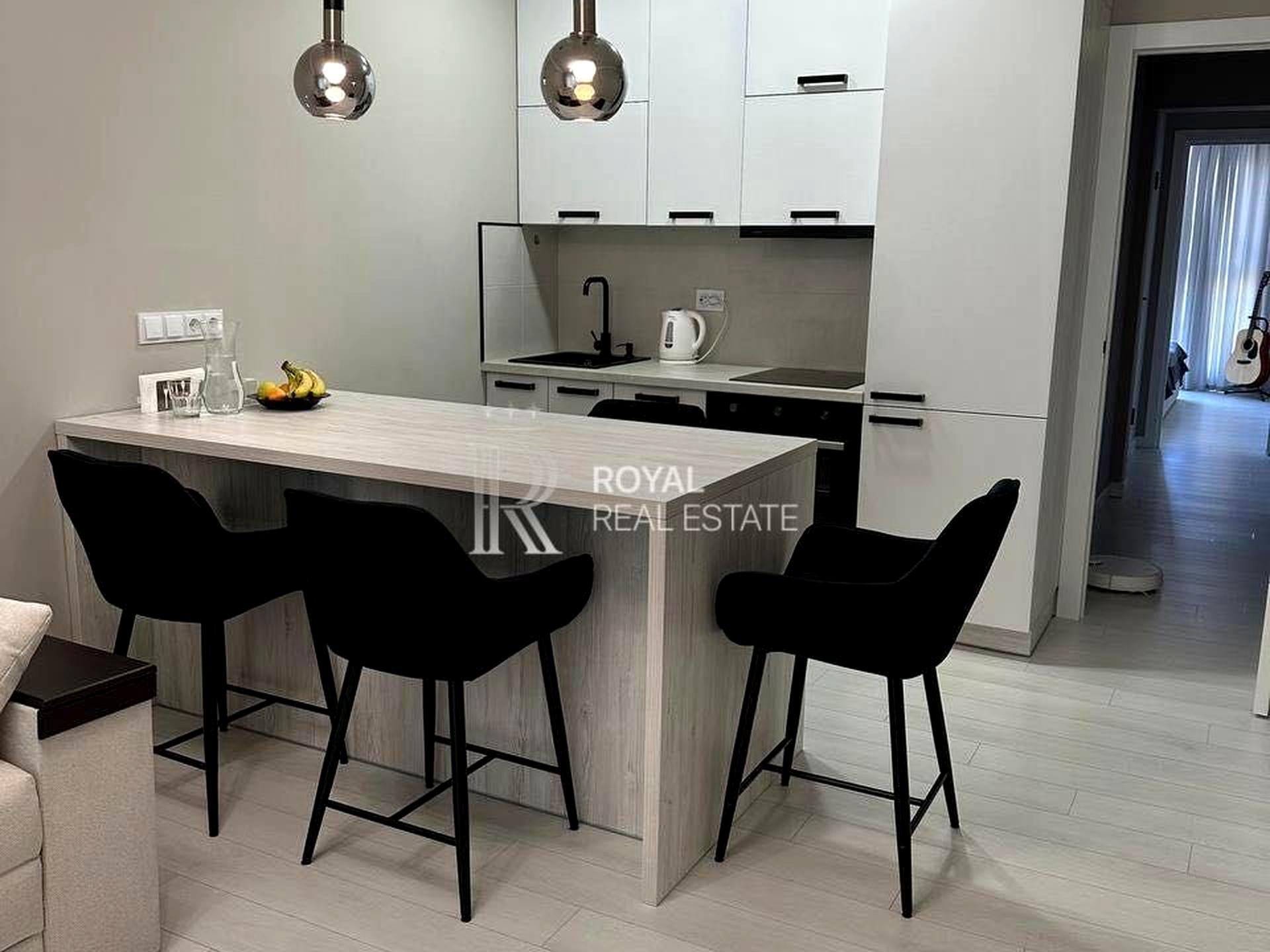 В квартире 2 комнаты, высота потолков 2.8 метра, Технологія будівництва - Панельна, Тип будинку - Спец. проект. Газа нет, кухонная плита электрическая. Есть балкон. В квартире есть Телевизор, Кабельное ТВ, Спутниковое ТВ, Подогрев полов, Кондиционер, Стиральная машина, Сушильная машина, Душевая кабина, Холодильник, Посудомойная машина. Дом построен в 2021 году. Общее состояние квартиры - С ремонтом. Безбарьерность: парковочные места для людей з инвалидностью. Горячая вода - электрический бойлер. Количество санузлов: 2. Интернет оптоволоконный. Работает без света - вода, отопление, интернет. Тип кухни - кухня-студия. Количество спален: 1. Комиссия за услуги 5 %