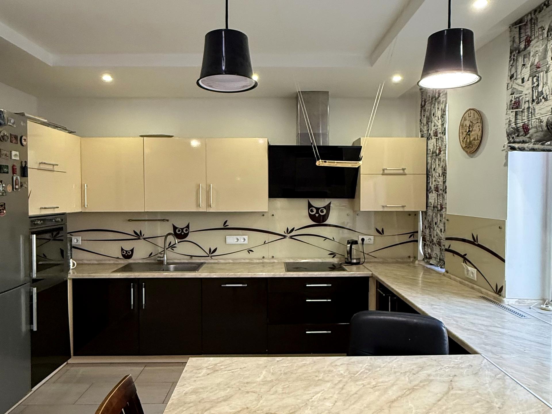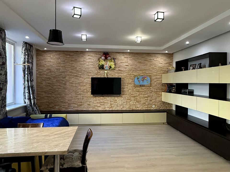 Квартира з якісним, дороговартісним ремонтом: кухня-вітальня з вбудованими меблями і технікою; гардеробна; спальня; дитяча; 2 санвузли ( душова, ванна).