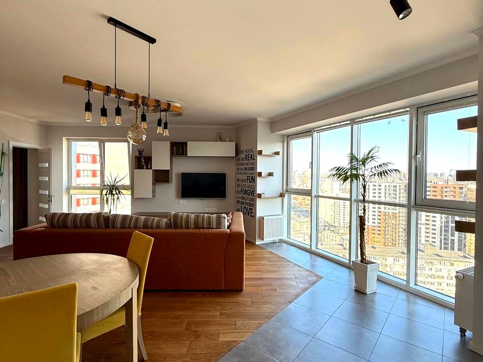 Простора, світла, з панорамними вікнами. Квартира тепла, бо знаходиться на південному сході.