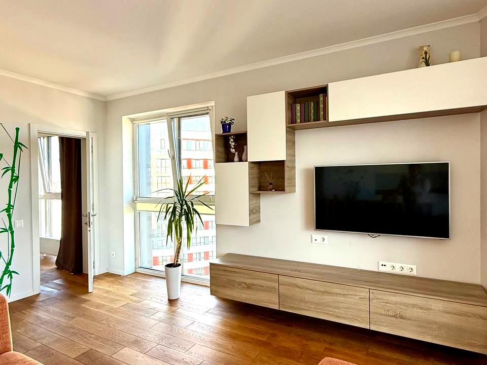 В квартире 4 комнаты, высота потолков 2.7 метра, Технологія будівництва - Монолітно-каркасна, Тип будинку - Спец. проект. Газа нет, кухонная плита электрическая. Балкона нет. В квартире есть Телевизор, Подогрев полов, Кондиционер, Стиральная машина, Душевая кабина, Ванна, Холодильник, Посудомойная машина. Дом построен в 2016 году. Общее состояние квартиры - С ремонтом. Горячая вода - электрический бойлер. Количество санузлов: 2. Интернет оптоволоконный. Работает без света - вода, отопление, интернет, лифт. Тип кухни - кухня-студия. Количество спален: 3. Без комиссии