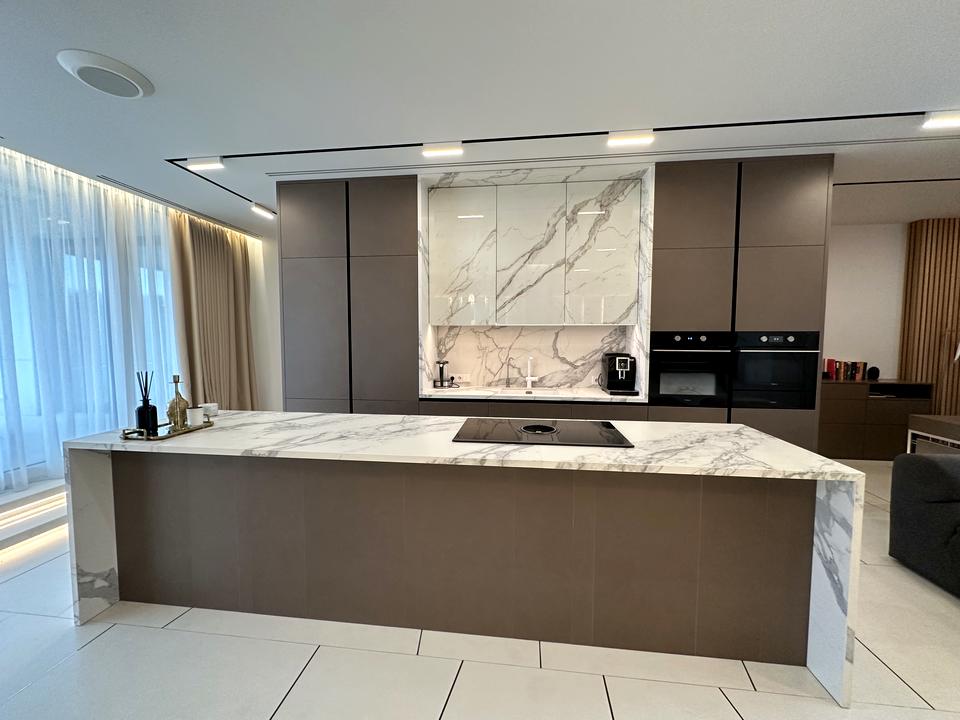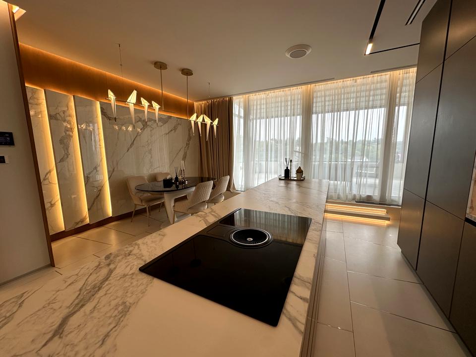 • Кухня-вітальня: острів, преміальна техніка, мармурові поверхні