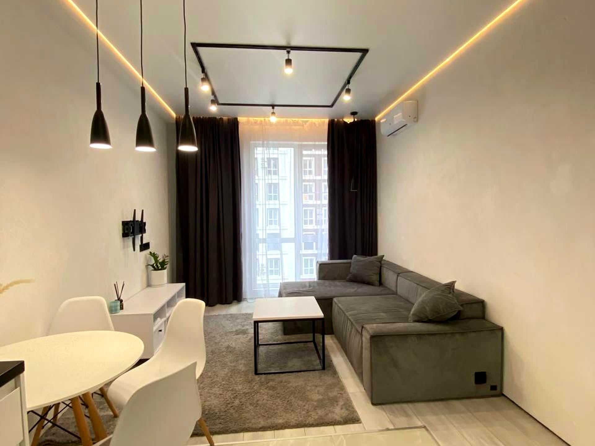 Квартира з сучасним дизайнерським ремонтом, повністю укомплектована меблями та технікою — готова до проживання або здачі в оренду.