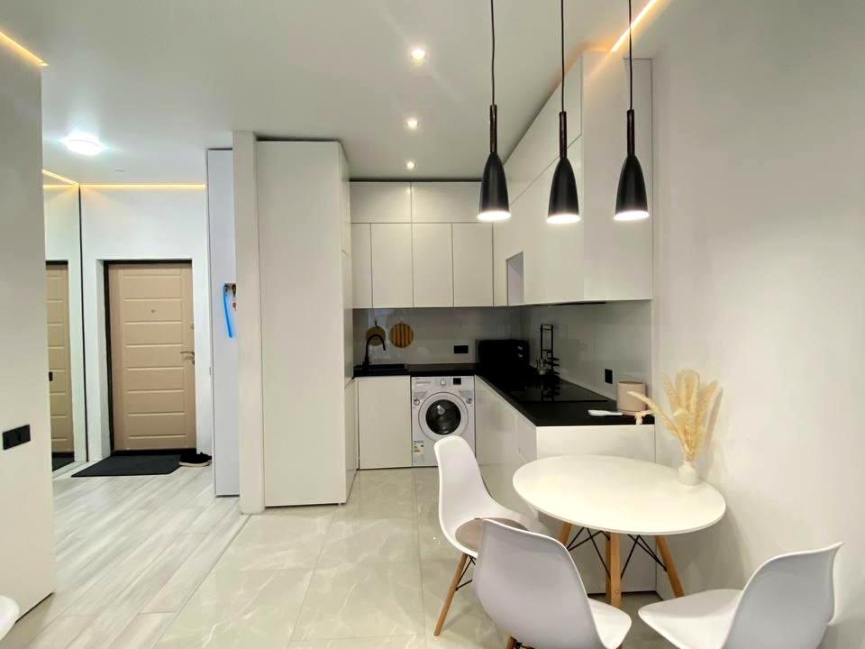 В квартире 1 комната, высота потолков 2.75 метра, Технологія будівництва - Цегляна, Тип будинку - Спец. проект. Газа нет, кухонная плита электрическая. Балкона нет. В квартире есть Телевизор, Подогрев полов, Кондиционер, Стиральная машина, Ванна, Холодильник, Микроволновка. Дом построен в 2021 году. Общее состояние квартиры - С ремонтом. Горячая вода - электрический бойлер. Количество санузлов: 1. Интернет проводной (кабельный). Владелец соглашается продать по программе єОселя. Работает без света - вода, отопление. Владелец соглашается продать по программе єВідновлення. Тип кухни - кухня-студия. Количество спален: 1. Есть подземный паркинг, доступный как укрытие. Инфраструктура территории: детская площадка, спортивная площадка, отделенная зона для выгула животных. Без комиссии