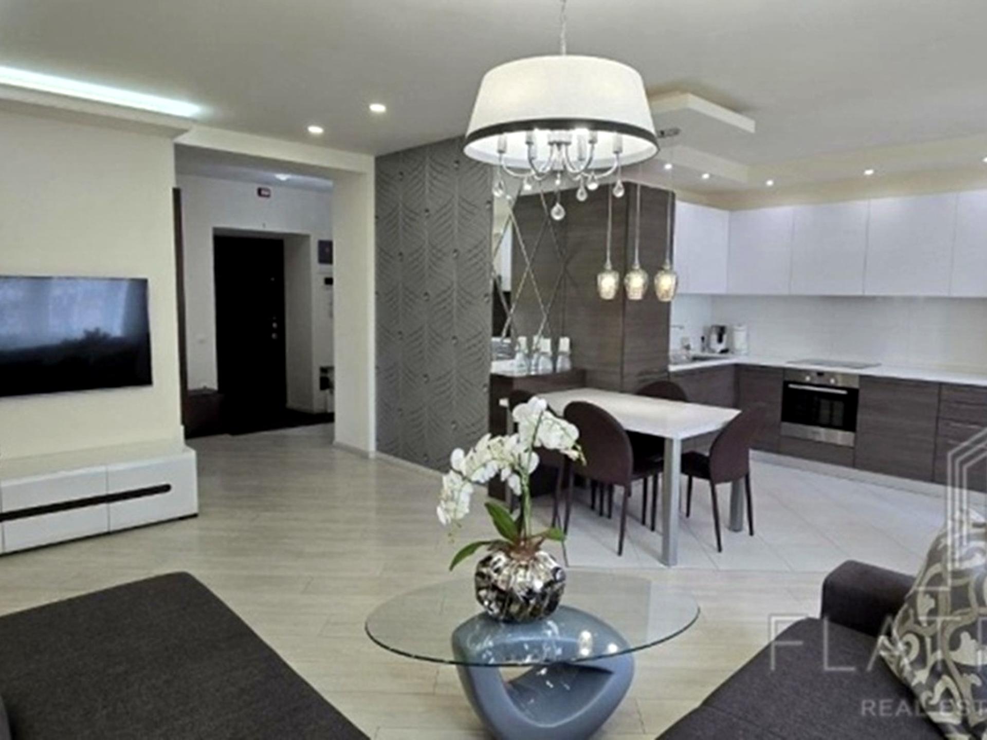 В квартире 3 комнаты, высота потолков 2.7 метра, Технологія будівництва - Цегляна, Тип будинку - Спец. проект. Кухонная плита электрическая. Есть балкон. В квартире есть Телевизор, Кабельное ТВ, Кондиционер, Стиральная машина, Душевая кабина, Ванна, Холодильник, Микроволновка, Посудомойная машина. Дом построен в 2016 году. Общее состояние квартиры - С ремонтом. Горячая вода - электрический бойлер. Количество санузлов: 1. Интернет проводной (кабельный). Работает без света - вода, отопление, интернет, лифт. Тип кухни - кухня-студия. Количество спален: 2. Комиссия за услуги 5 %