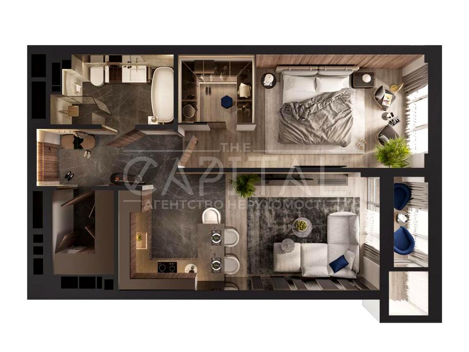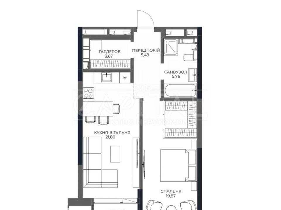 В квартире 2 комнаты, высота потолков 3 метра, Технологія будівництва - Монолітно-каркасна, Тип будинку - Спец. проект. Балкона нет. Дом построен в 2026 году. Общее состояние квартиры - Без ремонта. Горячая вода - электрический бойлер. Количество санузлов: 1. Тип кухни - кухня-студия. Количество спален: 1. Есть подземный паркинг, доступный как укрытие. Комиссия за услуги 3 %