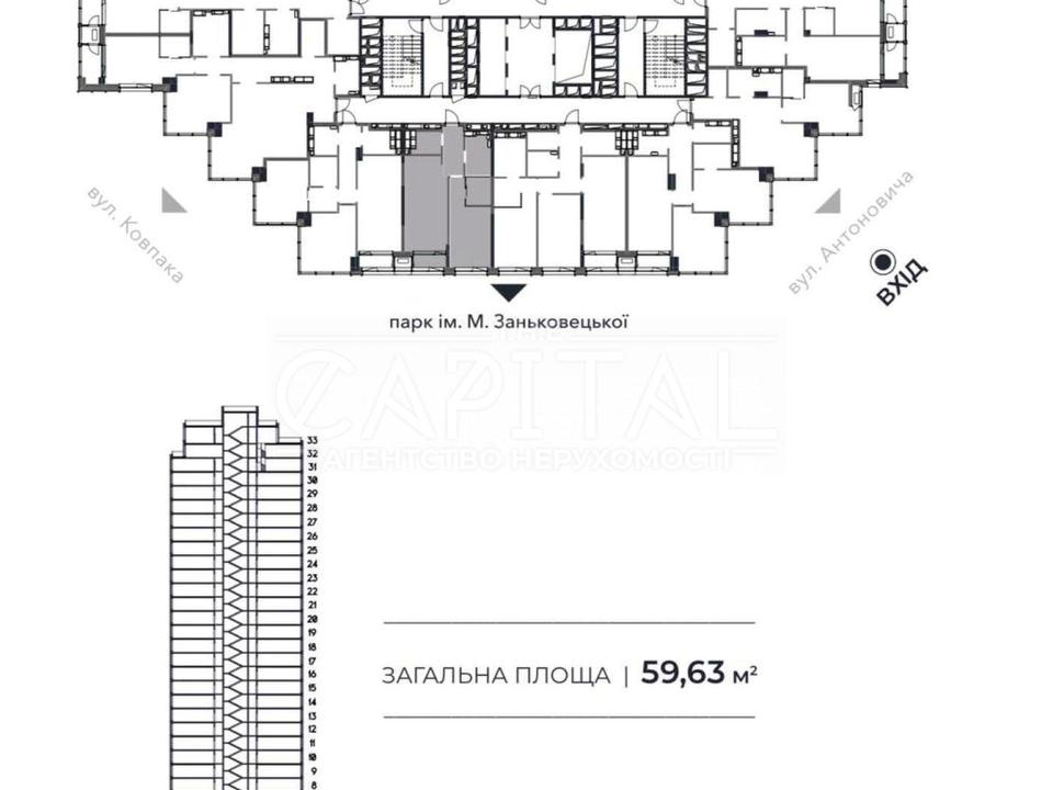 Продаж 2 - кімнатної квартири, загальною площею 58.13 м2