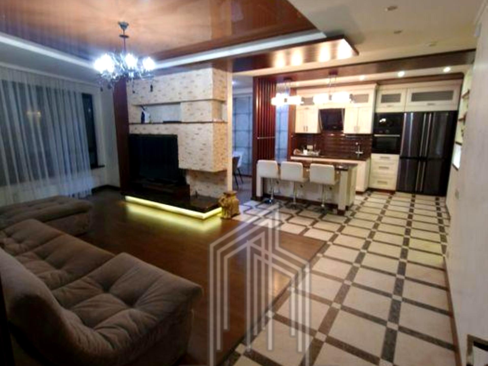 Інтер’єр виконаний у сучасному стилі з використанням якісних матеріалів і техніки провідних брендів.