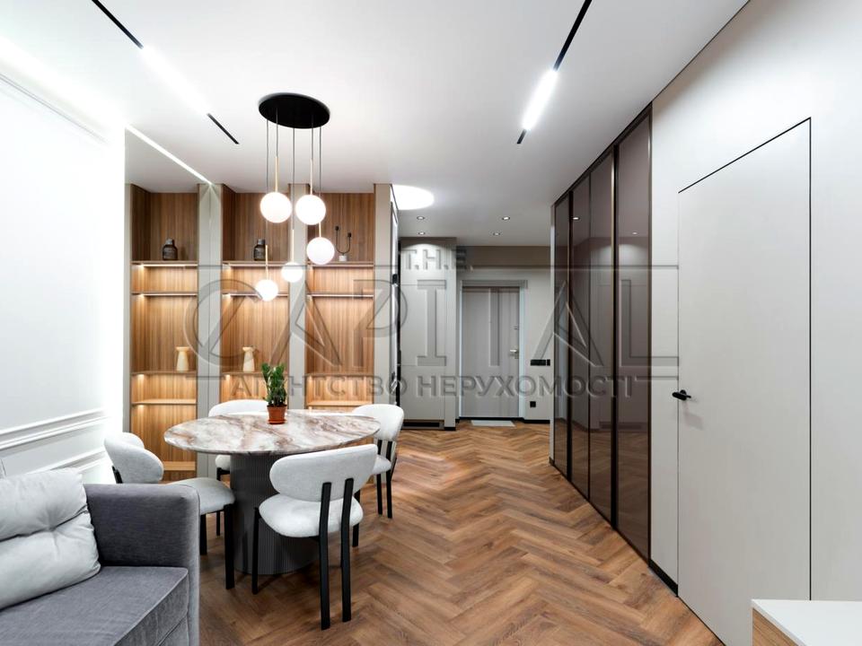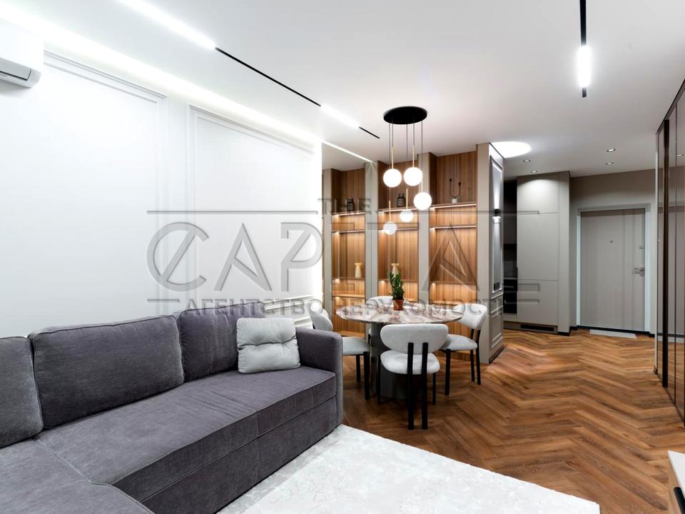 У квартирі виконано преміальний дизайнерський ремонт з використанням якісних матеріалів та продуманих рішень.