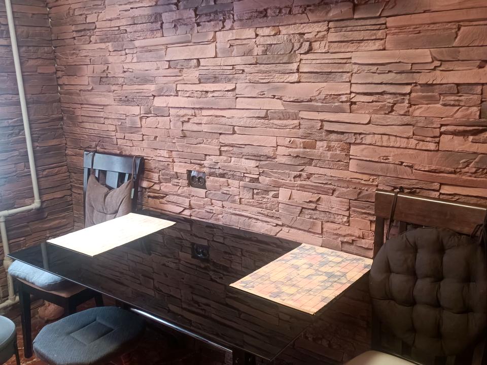 Декоративна штукатурка. На полу плитка.