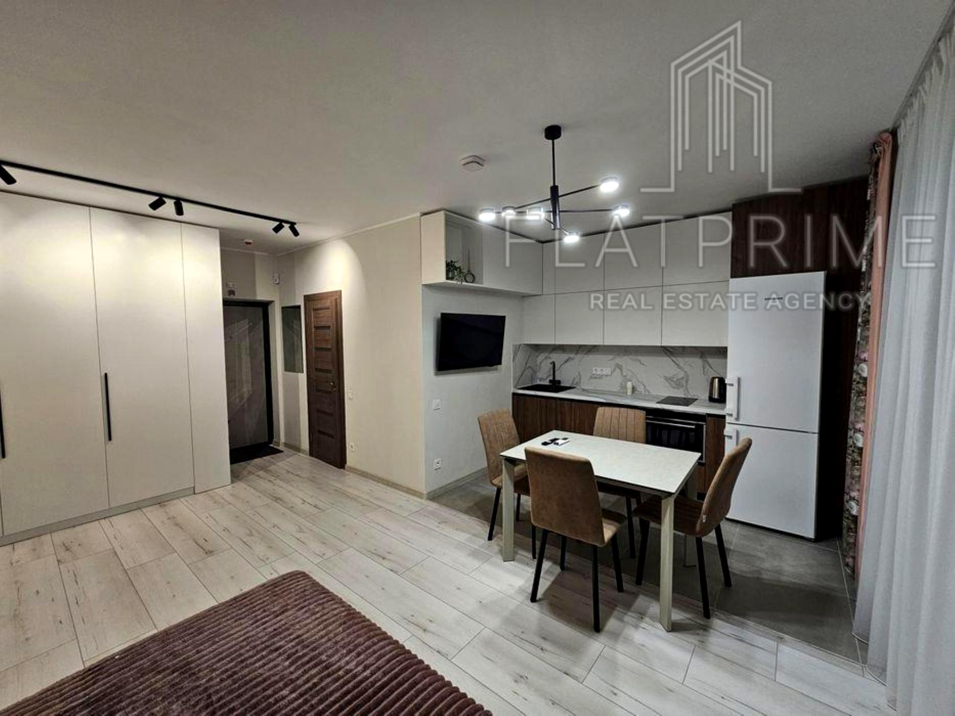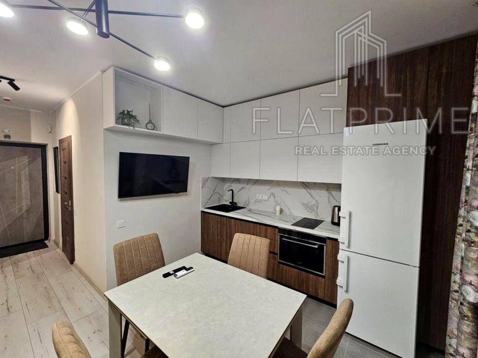Пропонується світла та простора квартира-студія площею 35 м² у сучасному житловому комплексі «Нивки Парк» за адресою вулиця Олеся Бердника, 1-В. Помешкання розташоване на комфортному 2-му поверсі та вирізняється щойно завершеним сучасним ремонтом і високим рівнем енергонезалежності завдяки встановленим акумуляторам великої ємності з інвертором. Квартира повністю укомплектована дорогою побутовою технікою (посудомийна машина, індукційна плита, духова шафа, кондиціонер) та добротними меблями, а для максимального затишку облаштована тепла підлога у ванній кімнаті та просторий балкон. Закрита територія комплексу з власною котельнею, цілодобовою охороною та прямим спуском у підземний паркінг, що слугує надійним укриттям, забезпечує безкомпромісний рівень безпеки та комфорту в кроковій доступності від метро.