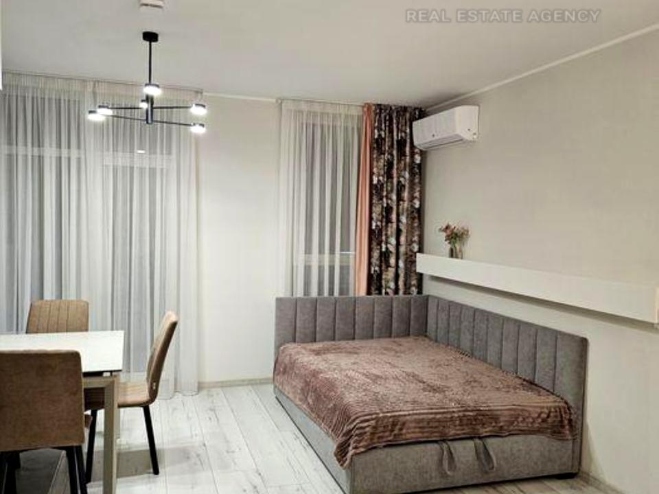 В квартире 1 комната, высота потолков 2.7 метра, Технологія будівництва - Монолітно-каркасна, Тип будинку - Спец. проект. Кухонная плита электрическая. Есть балкон. В квартире есть Телевизор, Камин, Кондиционер, Стиральная машина, Душевая кабина, Ванна, Холодильник, Микроволновка, Посудомойная машина. Дом построен в 2023 году. Общее состояние квартиры - С ремонтом. Горячая вода - централизованная. Количество санузлов: 1. Интернет беспроводной. Работает без света - вода, отопление, интернет, лифт. Тип кухни - кухня-студия. Количество спален: 1. Инфраструктура территории: детская площадка, спортивная площадка. Комиссия за услуги 5 %