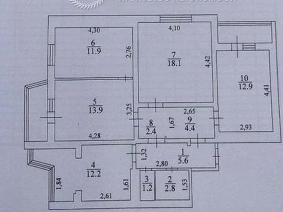 4 кімнати 7-й поверх, площа: 90,0\56,8\12,2;