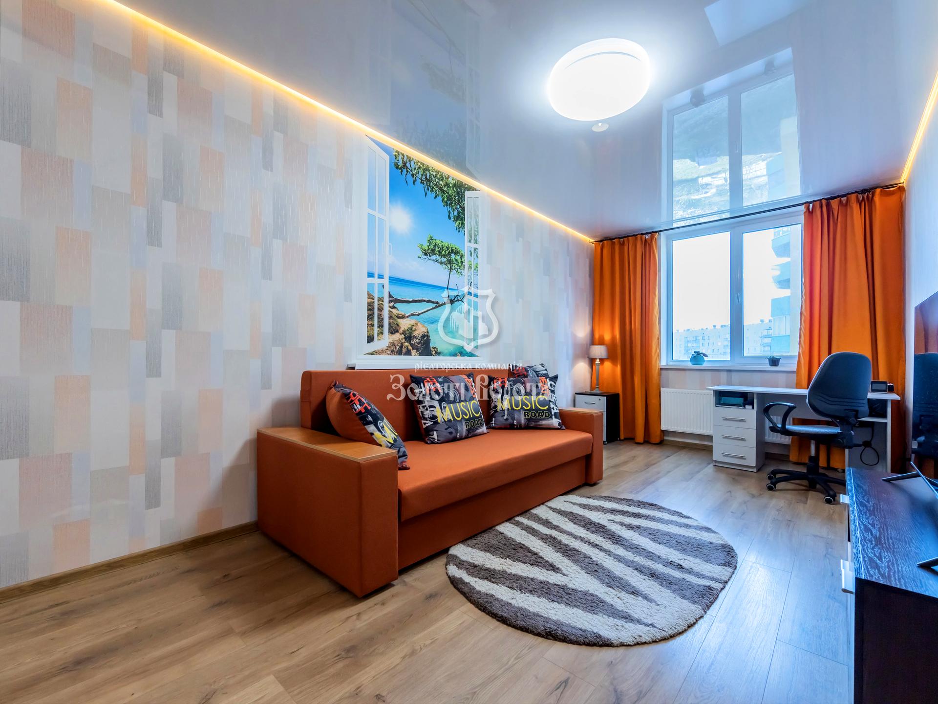 Квартира вирізняється ремонтом у гарному стані та грамотним зонуванням простору. Особливу увагу приділено освітленню: встановлена ефектна підсвітка по периметру кімнати та ванної кімнати, а також дзеркала зі спеціальним підсвічуванням, що забезпечує комфортні умови для щоденного догляду.