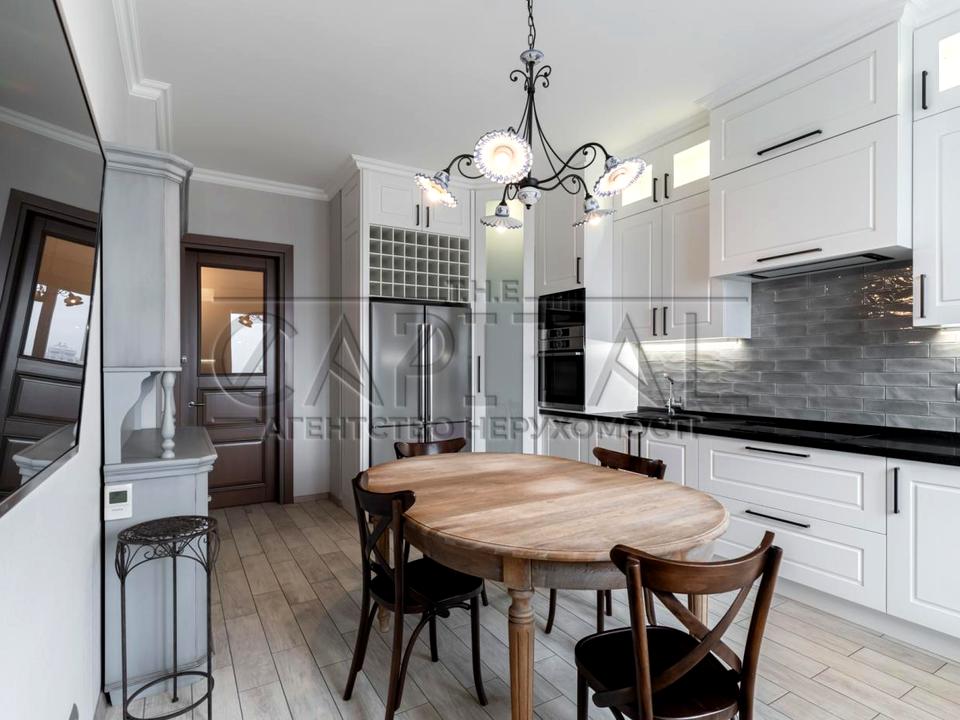 Квартира виконана в класичному стилі з елементами англійського шику та французького провансу, що створює унікальну атмосферу розкоші та затишку.