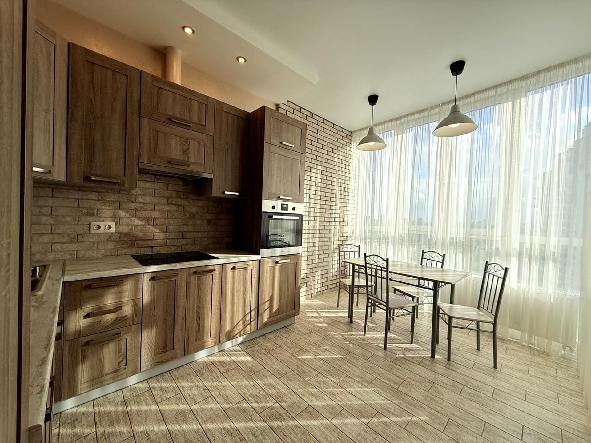 В квартире 2 комнаты, высота потолков 3 метра, Технологія будівництва - Монолітно-каркасна, Тип будинку - Спец. проект. Газа нет, кухонная плита электрическая. Есть балкон. В квартире есть Телевизор, Спутниковое ТВ, Кондиционер, Стиральная машина, Ванна, Холодильник, Микроволновка, Посудомойная машина. Дом построен в 2017 году. Общее состояние квартиры - С ремонтом. Безбарьерность: вход в дом на уровне земли, дверные проемы в доме шириной более 0.9 м, парковочные места для людей з инвалидностью, лифт, приспособленный к инвалидной коляске. Горячая вода - централизованная. Количество санузлов: 1. Интернет оптоволоконный. Работает без света - вода, отопление, интернет, лифт. Тип кухни - отдельная кухня. Количество спален: 2. Есть подземный паркинг, доступный как укрытие. Инфраструктура территории: детская площадка, спортивная площадка. Без комиссии