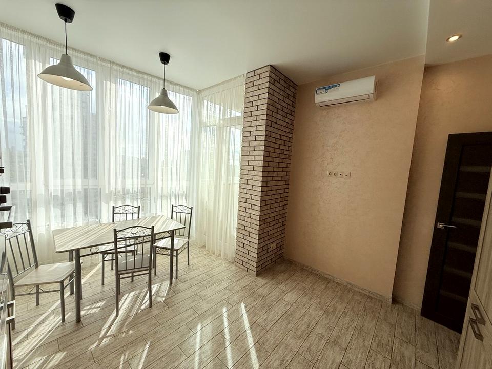 Квартира світла те тепла з панорамним видом на Київ, має окремі дві кімнати, санвузол, гардеробну та засклену лоджію. Вся техніка та меблі залишаються.