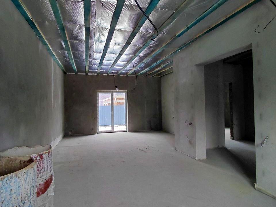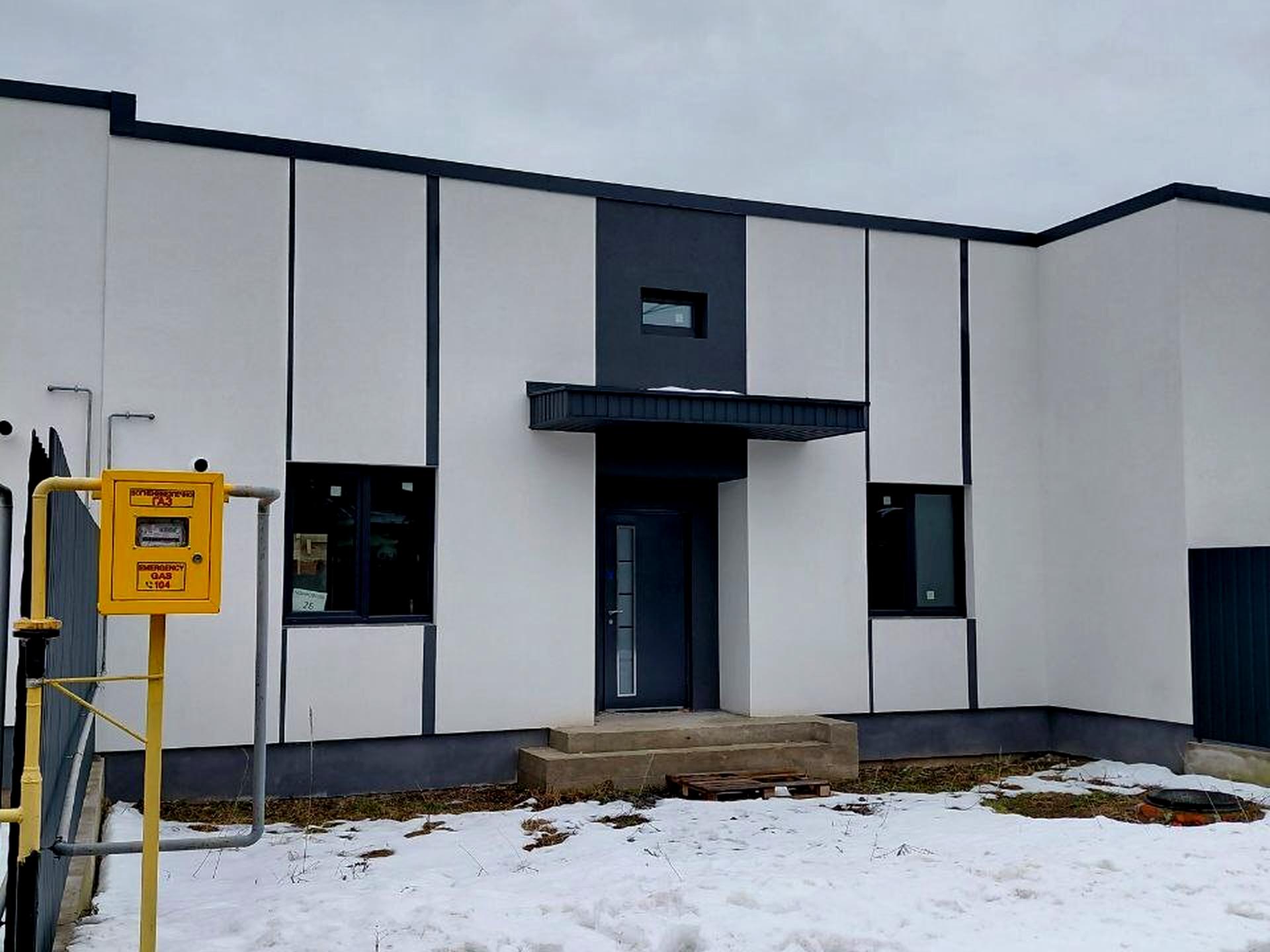 Зовнішні стіни будівлі – газоблок «Stonelight», фасад додатково утеплений пінопластом (10 см.), міжповерхове перекриття утеплене мінеральною ватою (20 см.). Внутрішній стан – відмінної якості стяжка-штукатурка, розведено електрику і усі сантехнічні комунікації. У будинок вже заведений газ, світло (три фази, 10 кВт, можливість збільшення потужності напряму через РЕС), вода – власна свердловина (глибина – 45 м., встановлений насос), каналізація – септик з переливом (по три кільця кожен).