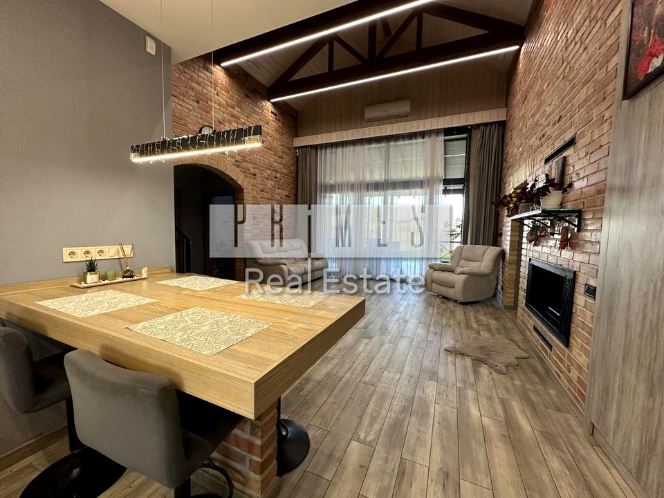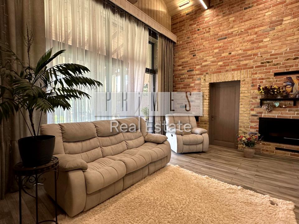 - простора кухня-вітальня (вбудована кухня: посудомийна машина, варильна поверхня, духова шафа). Кондиціонер, рекуператор, камін, вихід на терасу;