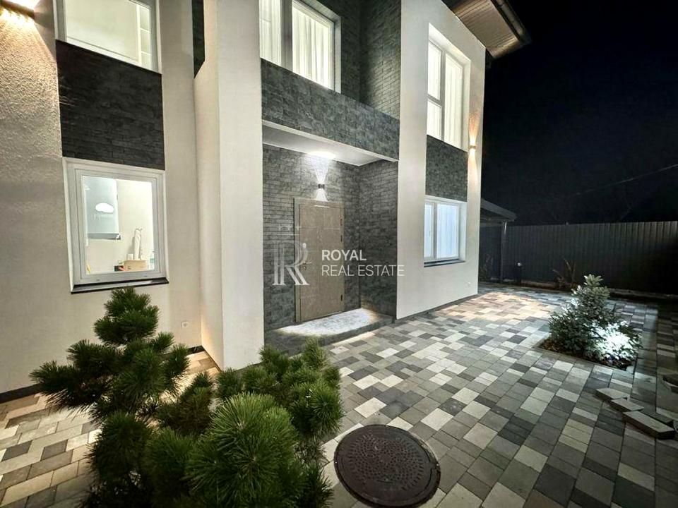 Новий будинок під Києвом площею 170кв. м. Будинок має 3 кімнати на другому поверсі та гостьову кімнату(кабінет) на першому. В майстер-спальні вмістка гардеробна та балкон. 2 санвузли: один на першому поверсі з душовою кабіною та сучасною душсистемою, а на другому з ванною та є ЛЕД лампа зі вмонтованим динаміком для музики). На першому поверсі простора кухня-вітальня з виходом на терасу, техприміщення. Ділянка має 4сотки. Прокладений авто полив та виведене вуличне освітлення. Зроблений ландшафт. Є навіс для 2 авто. Будинок побудований з газоблоку та утеплений пінопластом, дах вкритий металочерепицею. Стоїть електрокотел. Ворота автоматичні. По всьому першому поверсі, на другому поверсі в санвузлі тепла водяна підлога. Є вся необхідна техніка (холодильник, варильна поверхня, витяжка, духовий шкаф). Будемо раді бачити на перегляді!