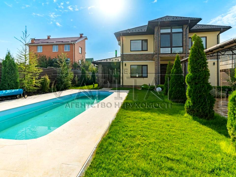 Пропонується до продажу дуже якісний двоповерховий будинок площею 230 м2, на ділянці 8 соток, за 2 км від Києва в мальовничому селі - Гатне.
