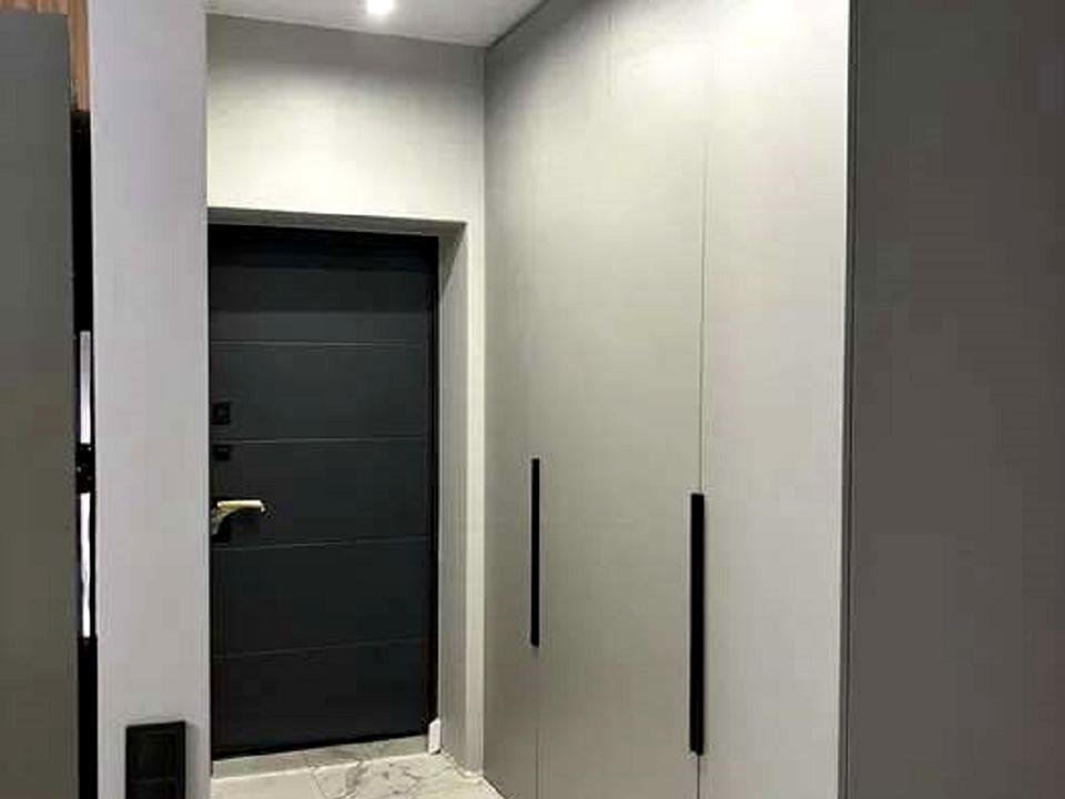 Стіни пофарбовані, з використанням склошовку під фарбу. На першому поверсі встановлені двері прихованого монтажу.