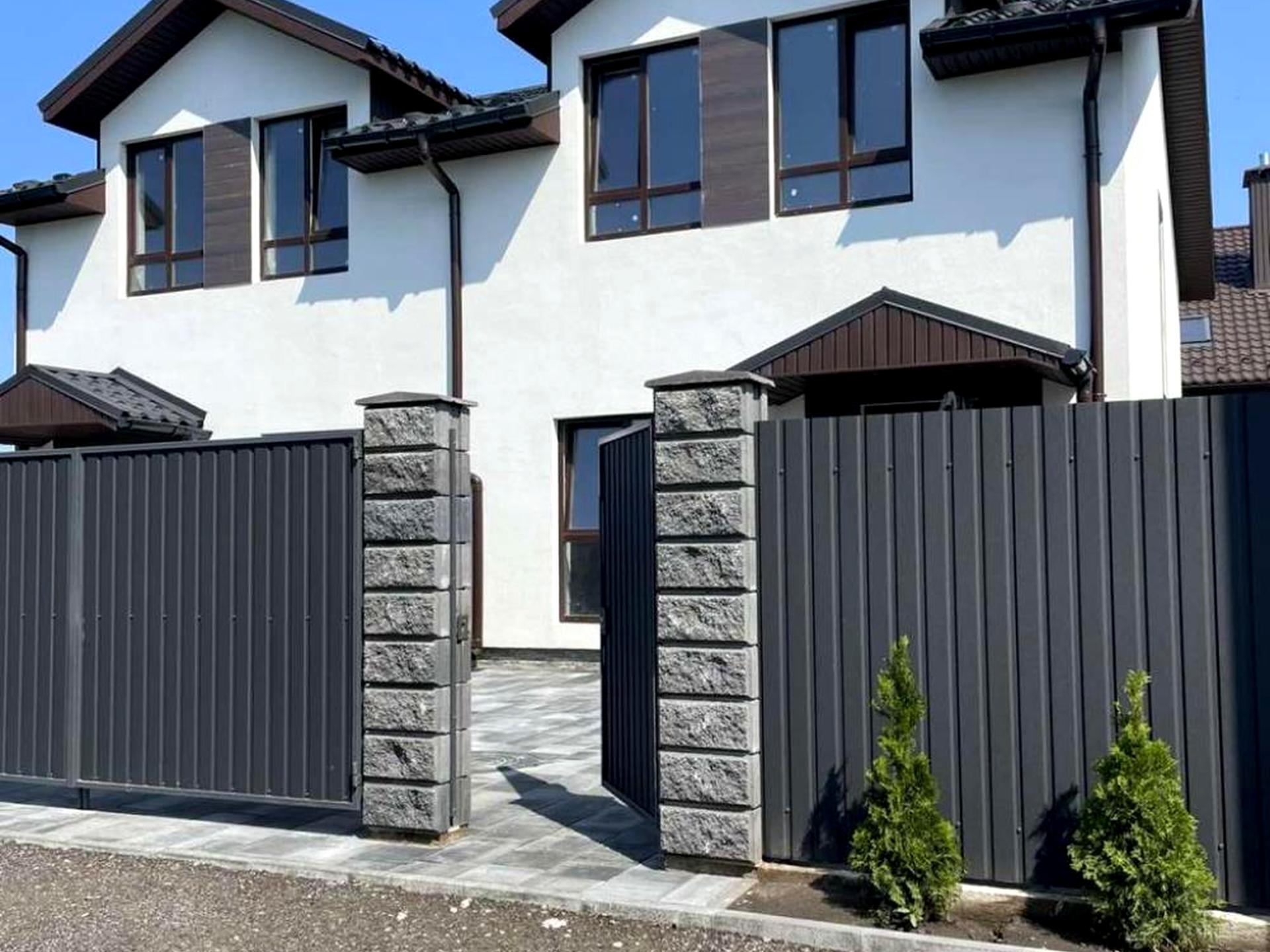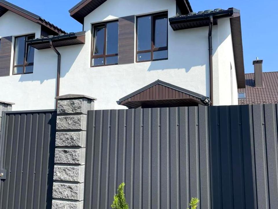 Паркан - профнастил кольору графіт.