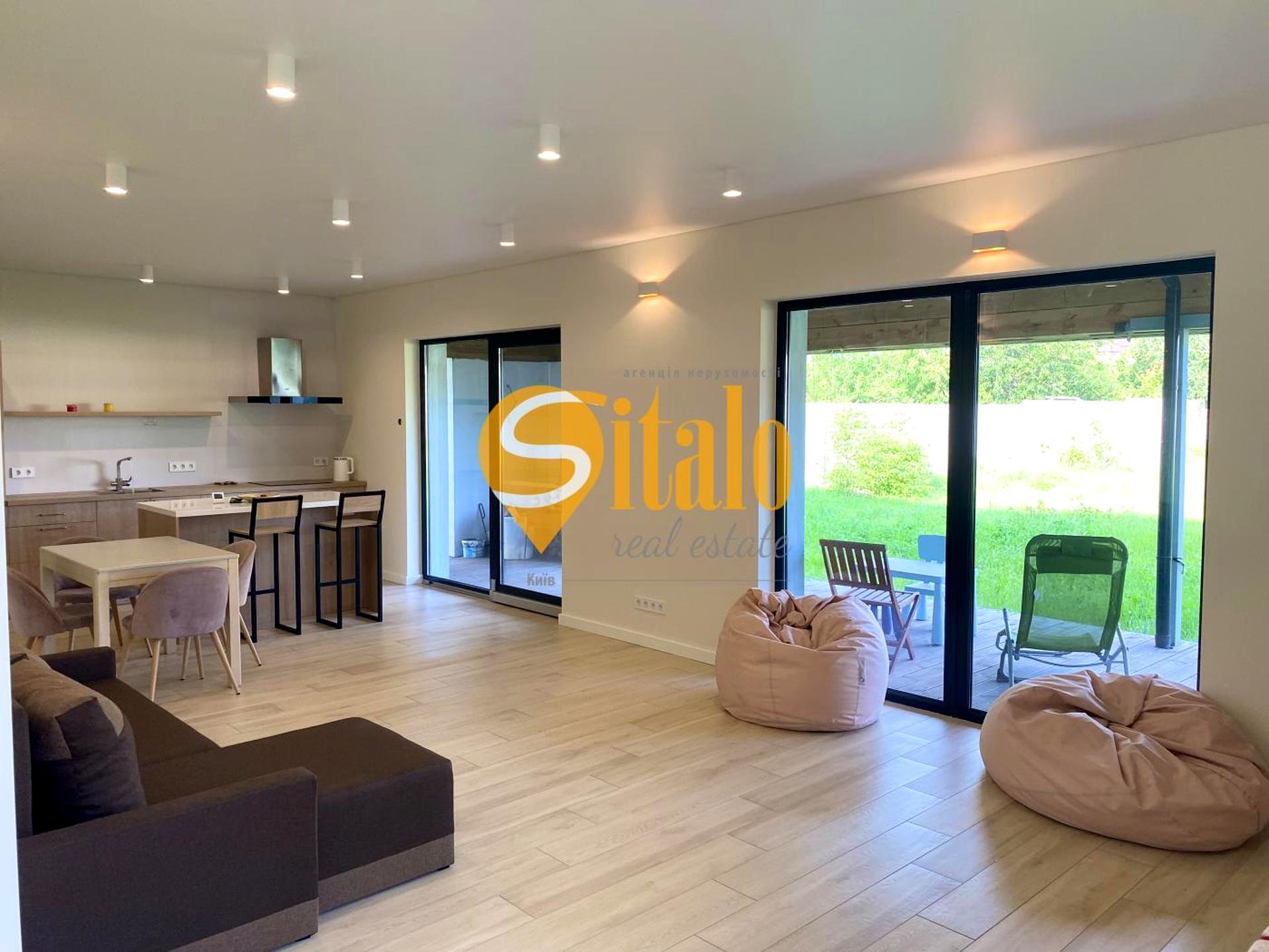 Пропонується одноповерховий новий будинок у стилі High-tech (Хай-тек) з ремонтом, каміном та терасою, у мальовничому селі Глеваха, вул. Культурна (Чернишевського), Одеська траса.