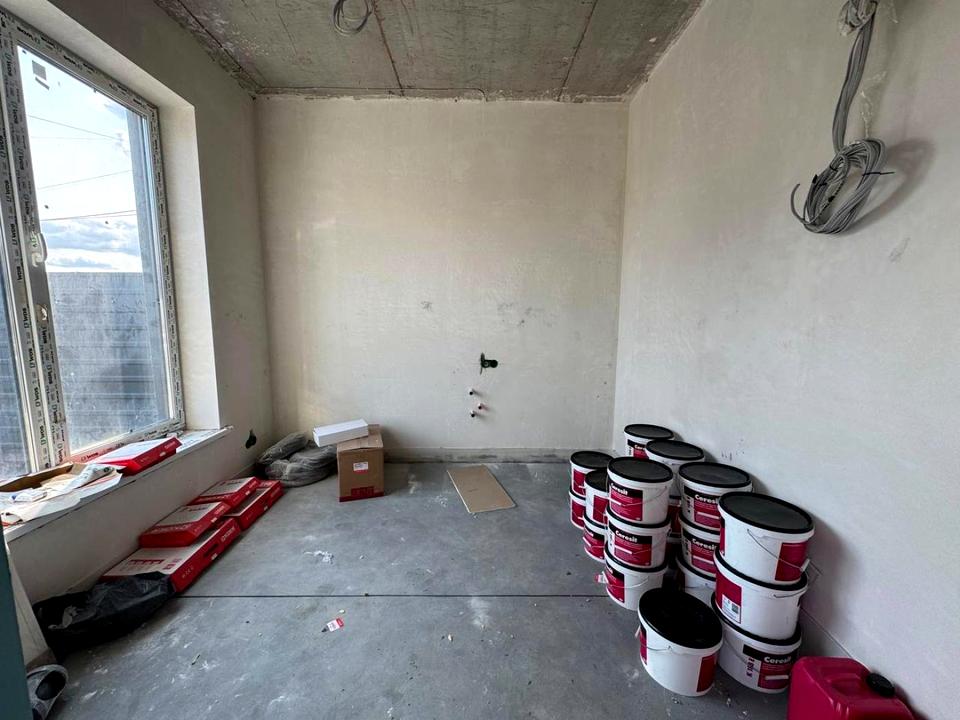 Будинок збудований з газоблоку та утеплений пінопластом. Заведені необхідні комунікації: вода (сверловина 70м), каналізація (септик) та електроенергія (16 кВт)